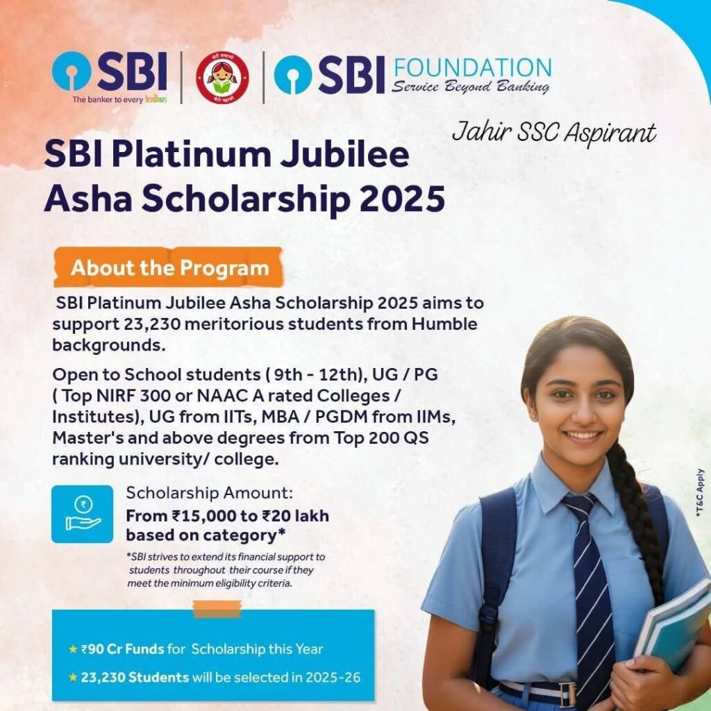 SBI Platinum Jubilee Asha Scholarship 2025-26 – पात्रता, लाभ और आवेदन प्रक्रिया