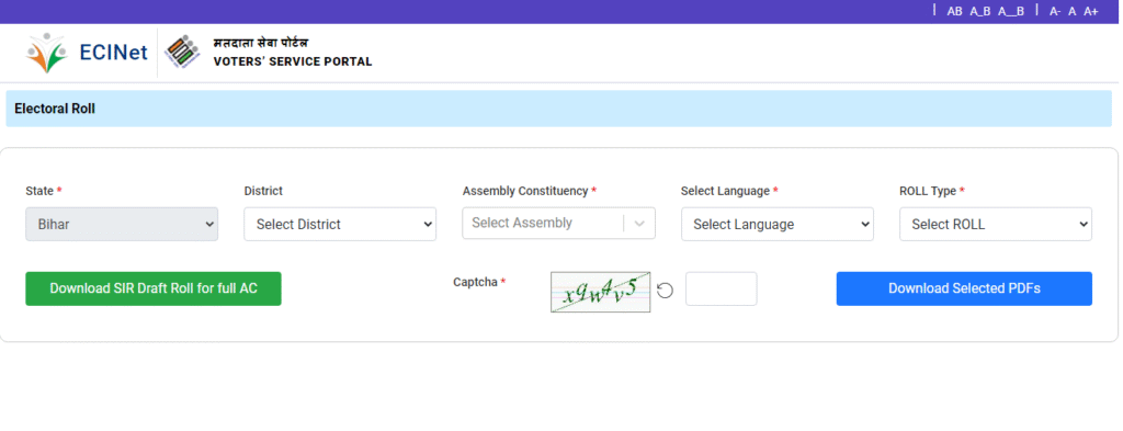 - Roll Type में SIR Final Roll 2025 चुनें।